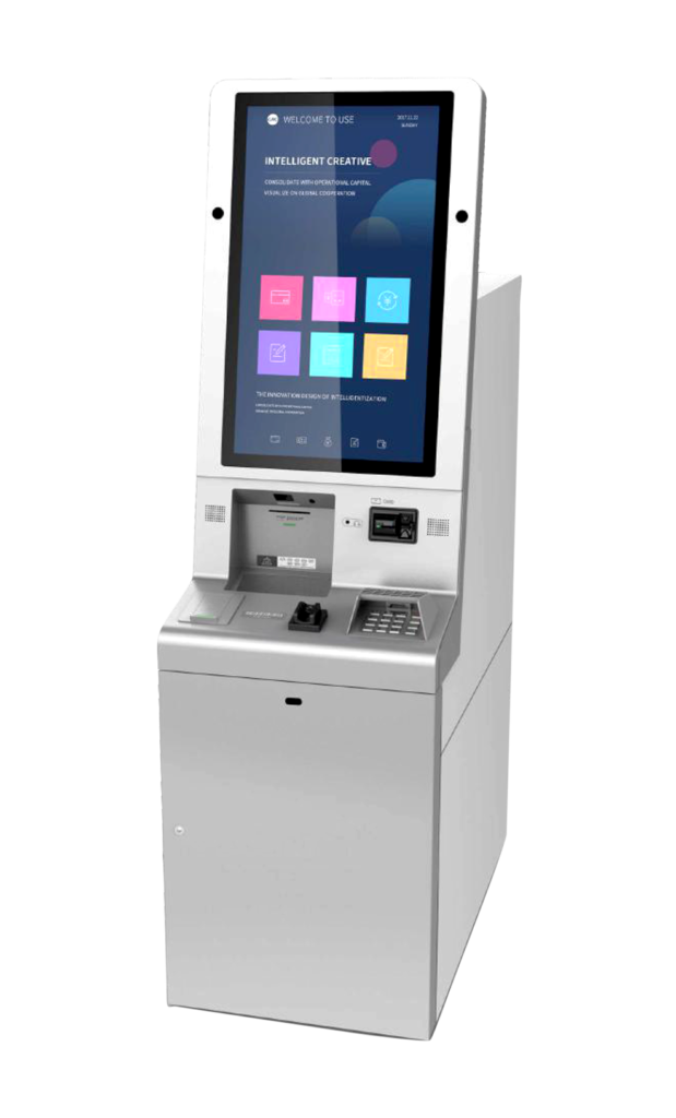 Flexibly configurable to cheque module, coin recycling module, biometrics solution, which can easily
